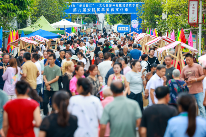 开幕式现场,民俗舞蹈《“舞”羊送福》、歌曲《幸福中国一起走》等精彩节目轮番上演,将气氛推向高潮。随后开启美食盛宴,上百米餐桌依次排开,清汤与红汤羊肉锅热气氤氲,为宾客斟上香甜咂酒,游客们在美食与歌舞中感受“安稳送‘安’来,伏羊携‘福’至”的独特魅力。