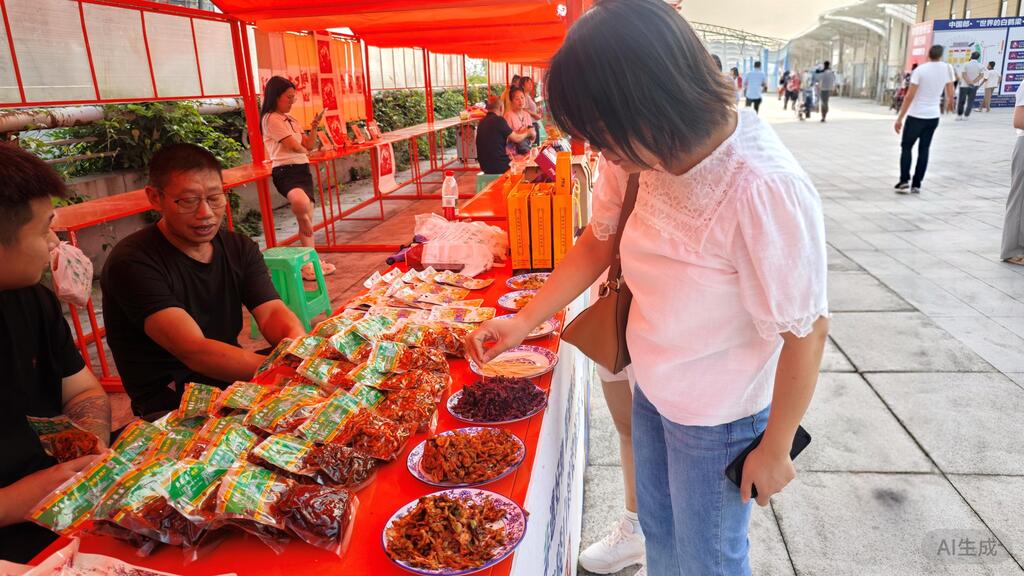 活动当天,奥体中心外人头攒动,热闹非凡。涪陵榨菜、油醪糟、白鹤梁文创冰淇淋等带着浓郁地方特色的美食摊位,早早便支起招牌迎客。摊主们洪亮的吆喝声此起彼伏,有的喊着“刚做好的油醪糟,暖乎又香甜”,有的招呼着“文创冰淇淋,打卡拍照超好看”,瞬间为远道而来的游客铺开了一场地道的味觉盛宴。